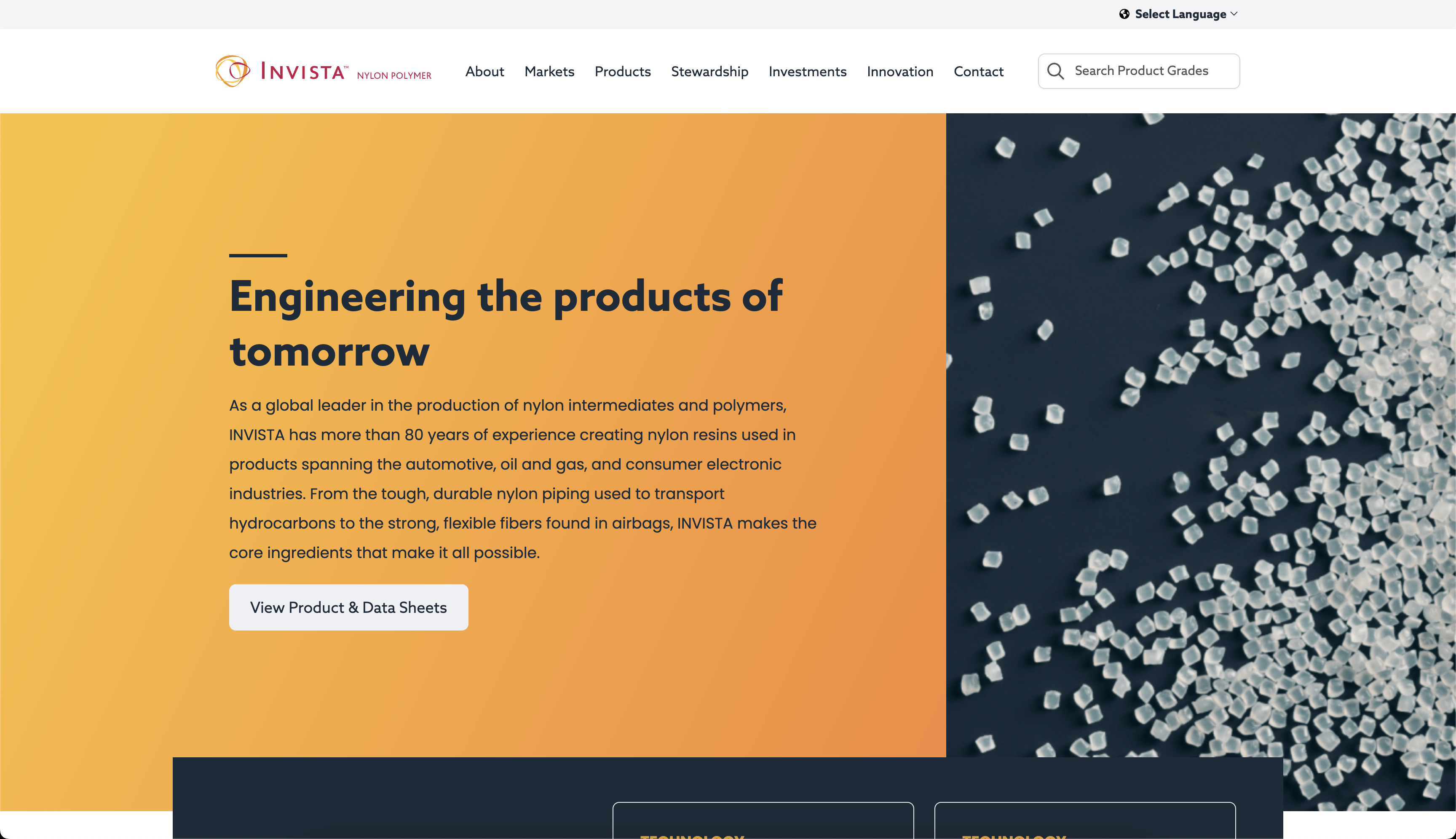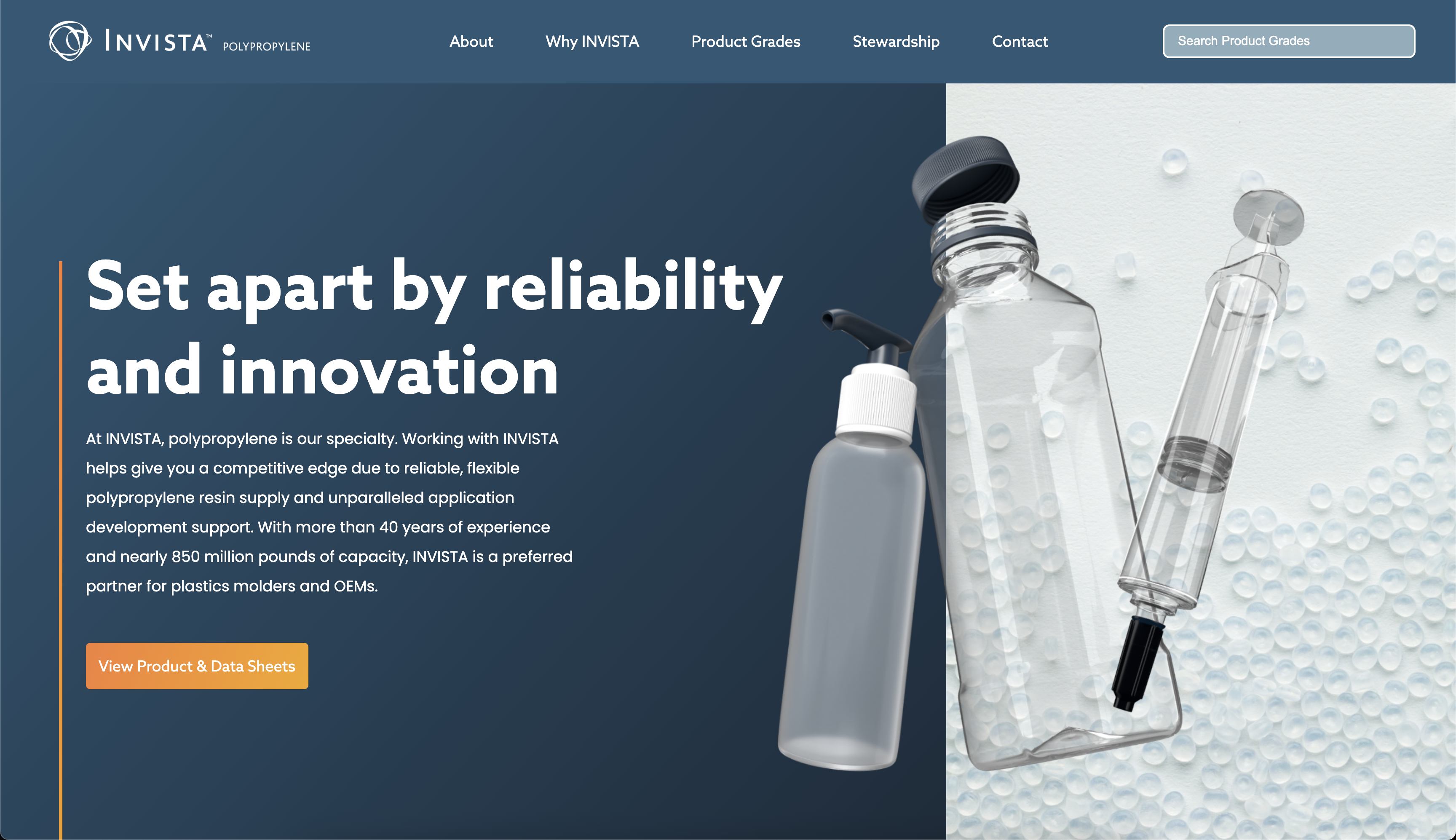 Created for INVISTA’s polypropylene subsidiary, this site highlights the company's expertise in polypropylene resin supply and application support. I led all aspects of the build—from front-end and back-end development to deployment and ongoing maintenance. The site communicates INVISTA’s 40+ years of experience and 850 million pounds of production capacity, positioning the brand as a trusted partner for plastics molders and OEMs. Like others in this portfolio, it includes multilingual support and integrates marketing features to support business growth.